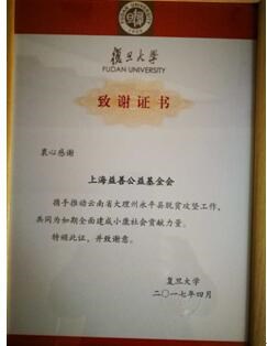 2017年4月21日,复旦大学党委书记焦扬专程从上海赶来参加“复旦大学定点扶贫永平县工作推进会”。益善基金因在永平全县推广“悦读计划”,为该县所有小学配建了图书室而受到了复旦大学的表彰。