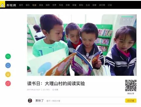 2017年4月23日,大理电视台《果秋了》栏目拍摄了短视频《读书日:大理山村的阅读实验》