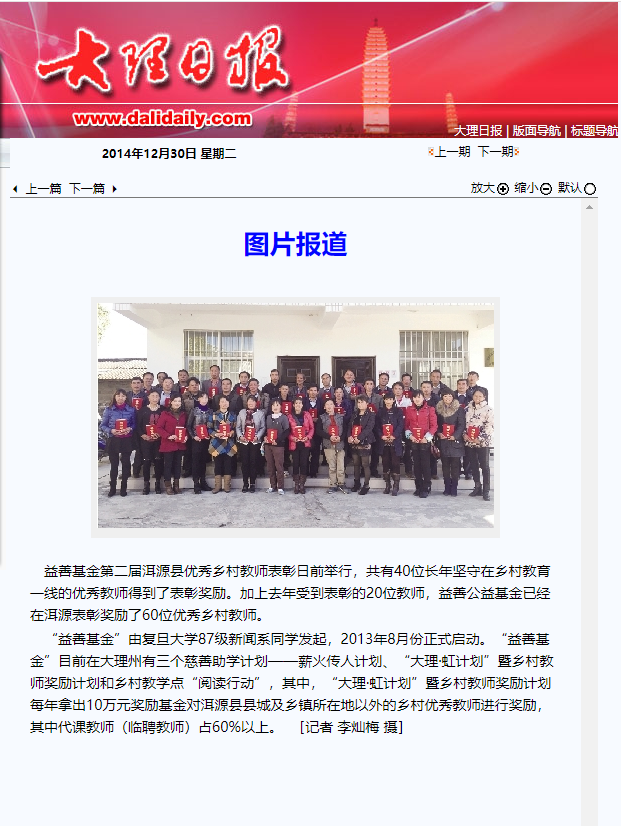 益善基金举行第二届洱源县优秀乡村教师表彰会