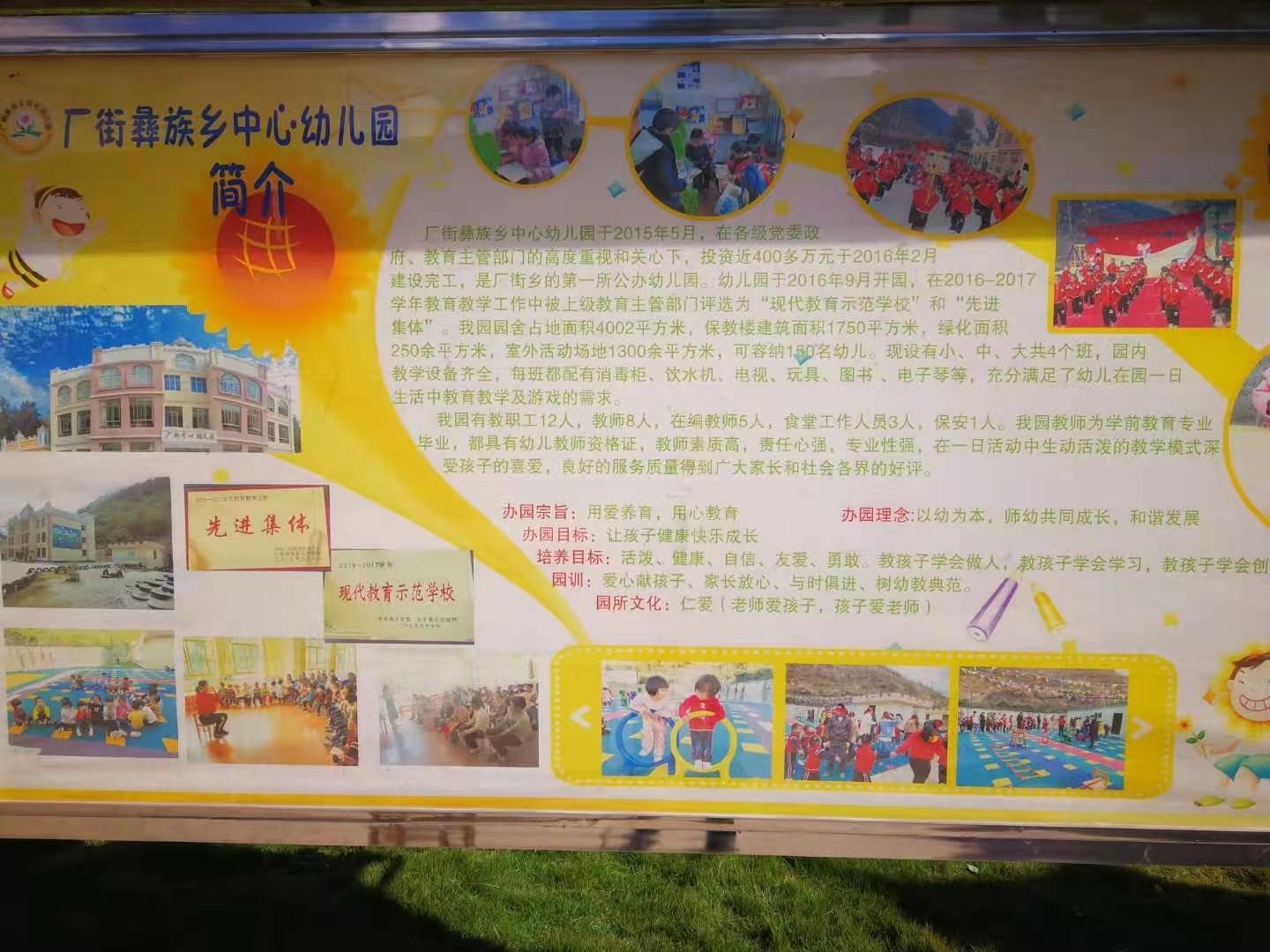 2020年12月3日,时隔两年多,再来走访永平厂街,参观了厂街彝族乡中心幼儿园,再次感受基层幼儿园老师们的辛苦付出,从2016年9月开园,全校的一草一木,以及每个区角都是靠老师们在力所能及的少花钱的基础上打造出来的。除了老师们的努力,还得依靠家长们的各方支持(就像沙池都是家长们拉沙、提供器具不花钱的成果)。还有很多器材的补充以及设施的采购限于资金的压力,很难得到有效的补充,益善能在力所能及的范围提供一些必要的绘本图书补充,可谓解决学校的急需的资源困难。规范的场地建设、专业化的教师队伍、健康的营养餐食、更大投入的资源配置、顺应身心发展的课程内容,这些都应该让家长更多更立体的感知下得到认可!