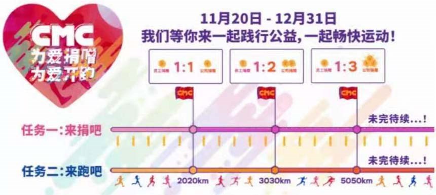 CMC华人文化集团公司为支持益善的“共同阅读”项目在偏远山区更进一步深入推广,为给那里的儿童送去更多的爱心图书,集团公司从去年11月20日到12月31日发起了“CMC为爱捐赠、为爱开跑”的爱心线上公益跑活动。