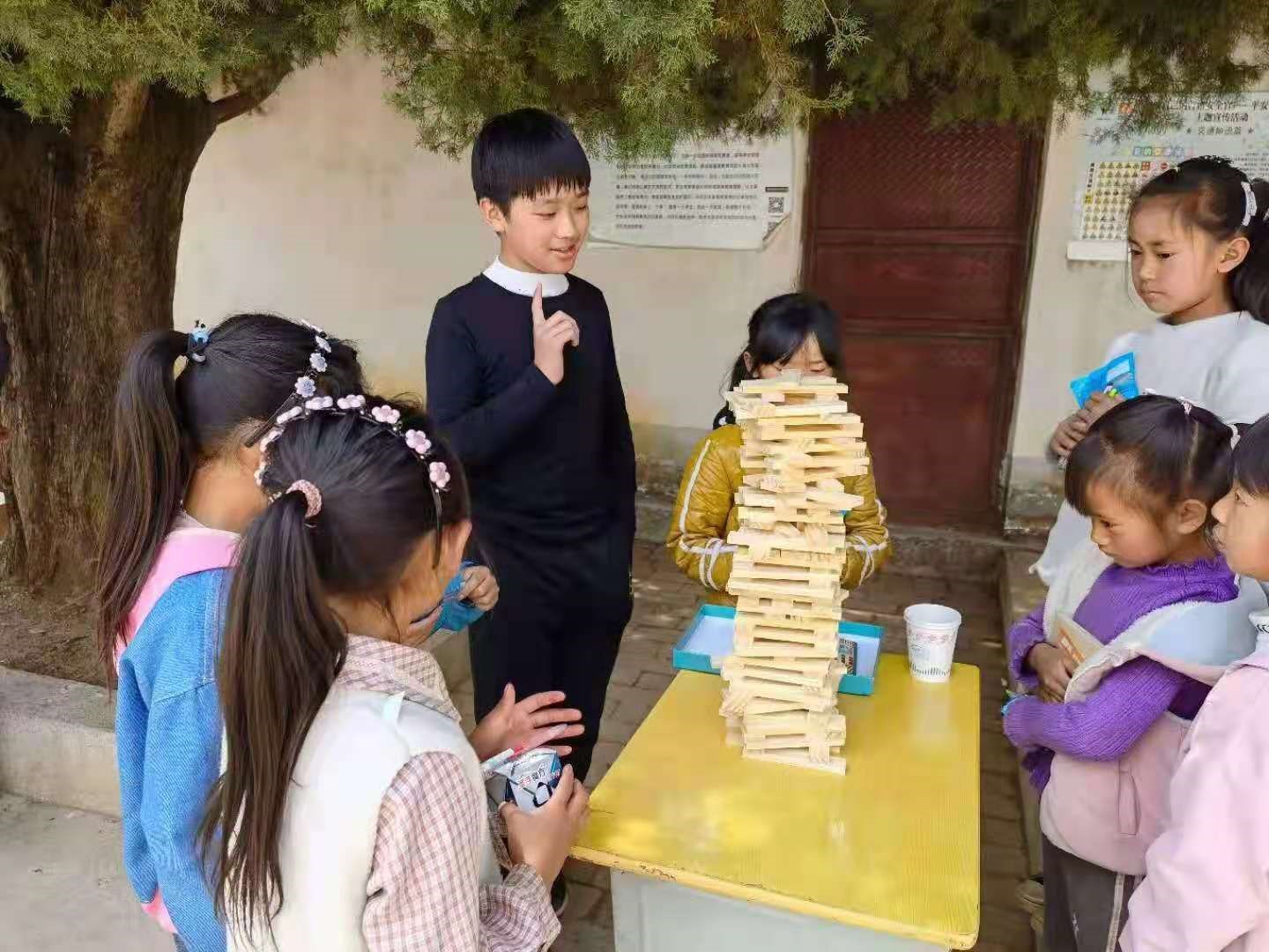 在海星小学,全校八个学生一起和小戎同学比赛查字典,一起听小戎同学讲故事,一起看小戎同学讲解积木,一起尝试玩Bingo棋,一起跟大明老师玩显微镜,一起听上过人民日报的杨老师讲他从15岁开始在这个教学点执教至今的故事。整个下午参与活动的每个人都享受到了单纯的快乐和学习的乐趣。