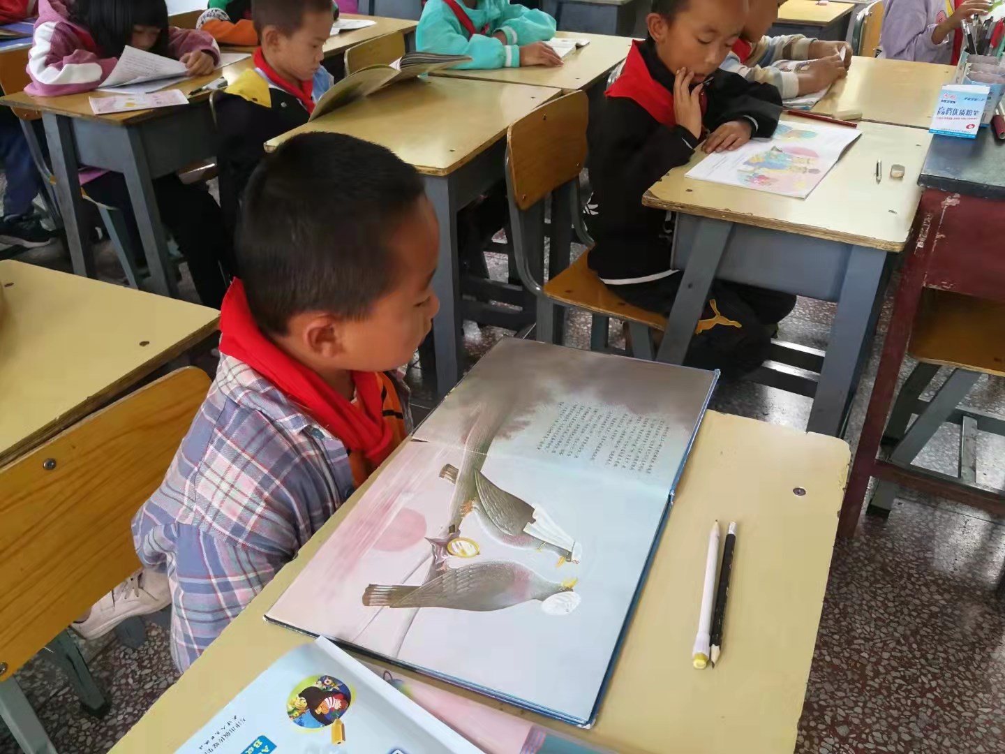 下午一路赶到杉阳镇抱龙完小,在办公室里跟所有没课的老师聊天,大家一起欢笑,相互分享。因为校舍紧张,全校13个教师要一起办公,但是大家可以在一起欢快的交流自己班级情况以及学生管理经验,这样的氛围让学校年年县级先进(全县前十)绝对实至名归!学校环境氛围好,阅读氛围也一样浓厚,阅读课每周可以坚持开两节,语文老师和数学老师轮换带领阅读,都已经是常态了。.jpg)