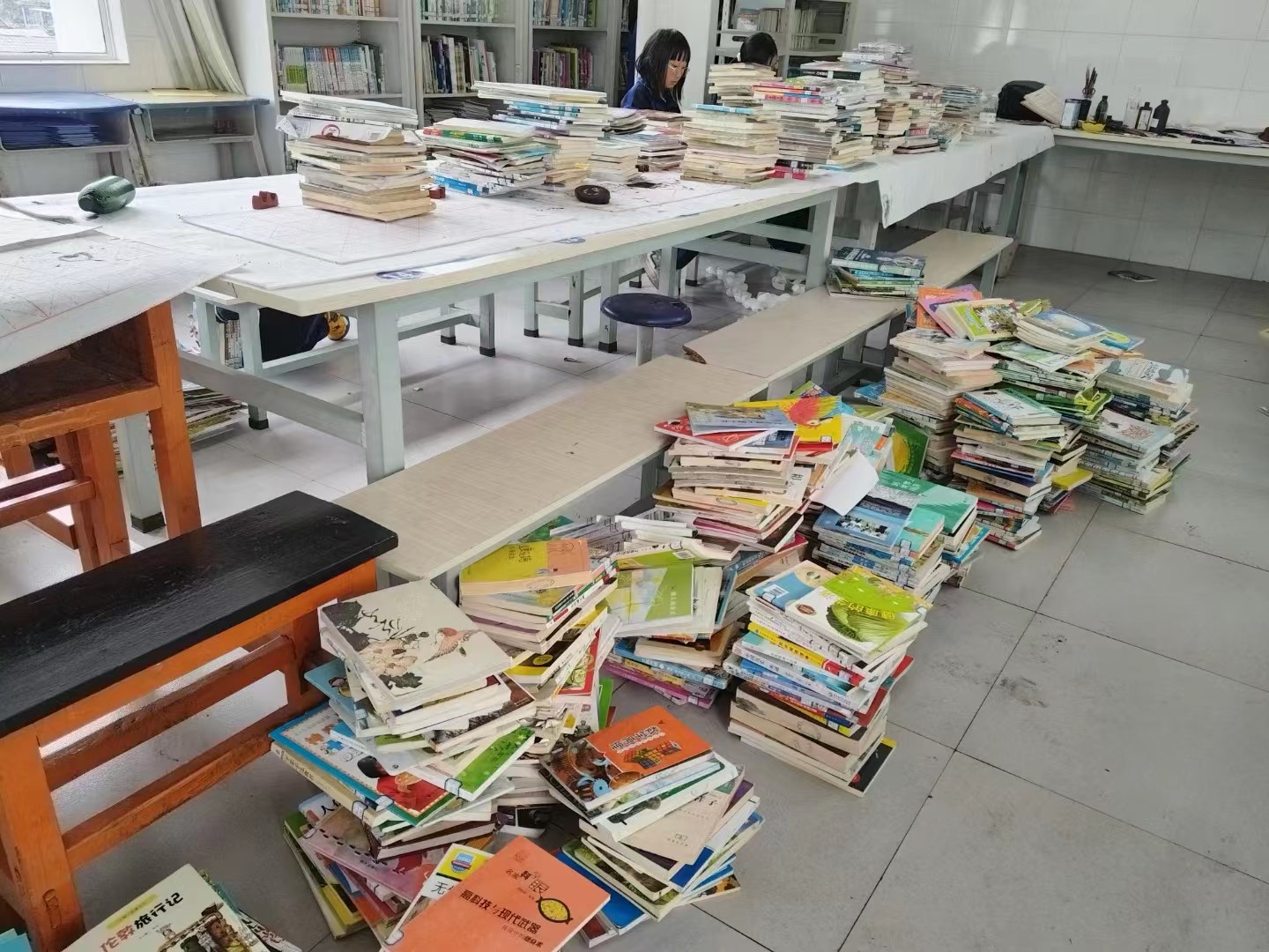 完成有效图书的筛选,为录入系统做准备;喜获学生助手的帮忙,开始进行贴标工作;一天下来,进展迅速。贴标分级,同步进行,以后可考虑志愿者,有意可约。