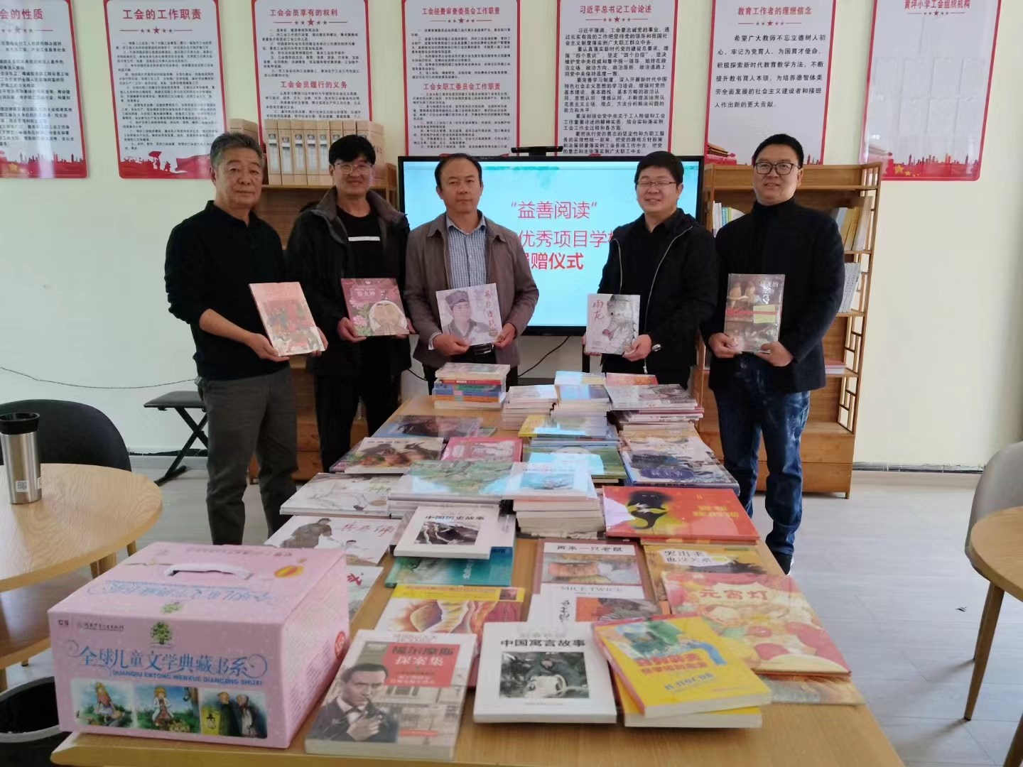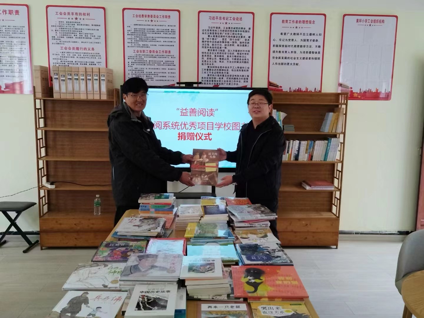 10包、500册益善图书,杨校长接受捐赠,特意选了《最美的礼物》这本书,符合捐赠情境。参会领导各选一本喜欢的书,以此存照。三位老师来帮忙,现场拆封,年轻的李老师一边拆一边看,兴奋不已。留在学校,帮助管理员杨老师进行借阅系统的使用培训。这下,杨老师恍然,原来使用起来,没有遇到之前的那么复杂。杨老师叫了四个五年级的女生来帮忙给图书贴标,这几个学生很是开心。恰巧有两本书赠送了文具盒和一张明信片,奖励给她们又显不够,让她们自己裁定,于是,石头剪刀布,简单的决定。