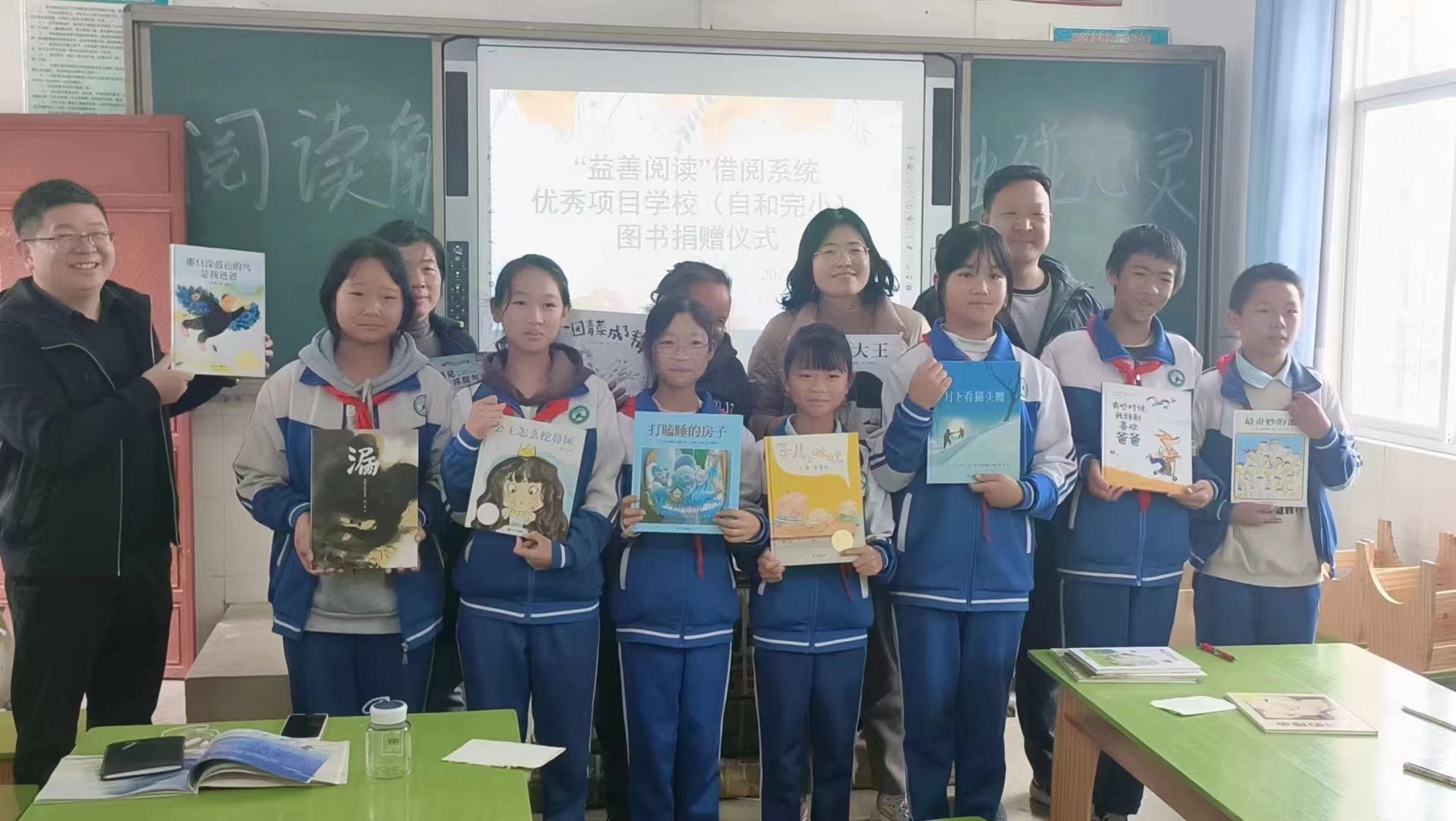 2023年12月8日,一大早,不仅拉上500册图书,还拉了重要嘉宾-当时在自和完小支教、负责图书管理的刘凯老师,虽然现已结束支教,要特邀感谢。有美丽中国两位主管加持,步伐都加快了很多。 要大大感谢力角中心校的热情支持,今天去自和完小送书,杜校长、张书记、李副、子老师、季老师一起参与,实在感动。仪式还未开始,我们临时起意,和在座的师生们上了一节轻松自由的阅读课。子老师和张书记从各自看《迟到大王》、《团圆》到我拉着李副、子老师和赵校一起欣赏《一寸虫》。张书记也开始读《有些时候,我特别喜欢爸爸》给孩子们听。看到大家兴致超足,就带着在座所有师生一起欣赏《阿虎开窍了》,以此让老师们走进绘本、欣赏绘本的高阶价值。到这里气氛已然热烈,主持人金老师就组织了一场师生阅读分享会,甚至还有学生主持,五一班的四位学生轮流分享了自己阅读的故事以及所思所感。两位教师代表也参与分享,李云霞老师在表达感谢的同时分享自己的阅读成长,从童年期享受快乐、到中学越发喜欢阅读、再到读大学时的外国文学,用自己的成长,用《穆斯林的葬礼》、《安娜卡列琳娜》、《百年孤独》、《次第花开》、《泸沽湖》、《消失的地平线》等书来印证不同时期的阅读会收获不同的感受。平时即使再忙,也能坚持读上一两页,假期就可以大把的享受阅读,着实敬佩。胡老师则声情并茂的分享了《群山回唱》,有简介、有朗诵、有感触,给我们展示了现场版的“朗读者”,绝对的享受。