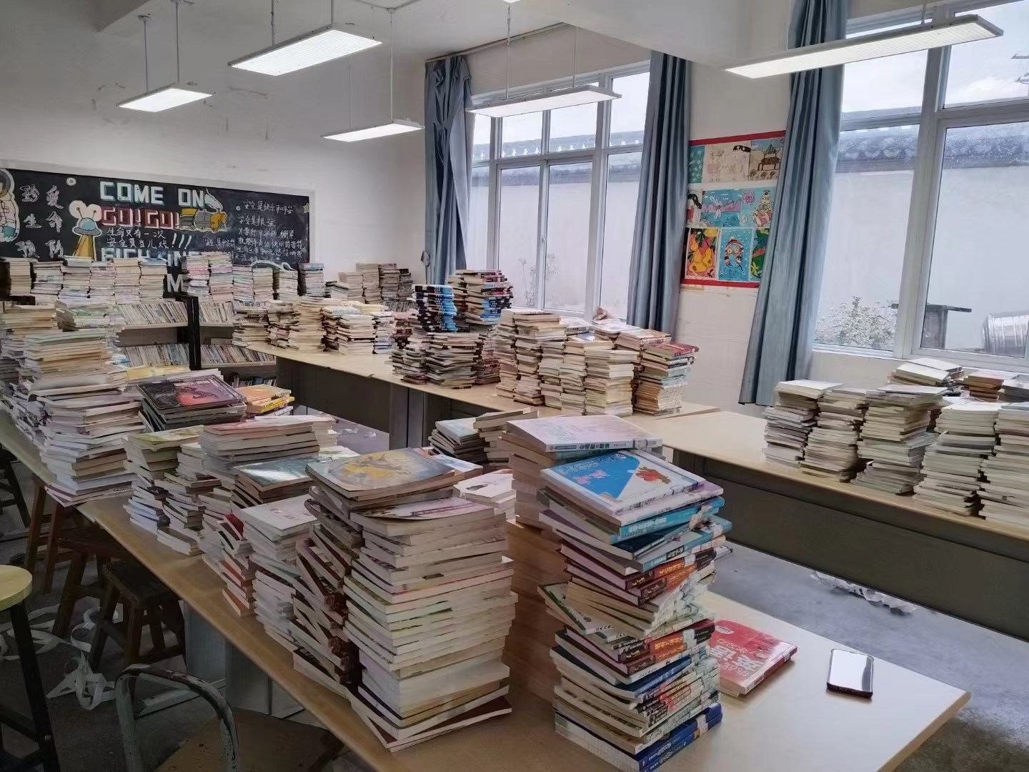 全校老师被召集到阅览室,手把手介绍如何登录、怎么录书,大家立即开工,可能是提前分好了小组,除请假两位,全部34位老师,一边贴标,一边录书。因为要干活、因为教师年龄偏大,刚进来大家表现出的是皱眉、叹气,干着干着,竟有老师慨叹“这系统好用”,我的惶恐也终于缓了一下。因为分小组干活,陆续有一两个小组的几位老师干完自己的活离开,而请假的两位老师所在的小组干的必然慢些,本来准备留给这两位老师的活被其它老师看到,然后就说“还是一人多录一点,把它弄完。”一个队伍能如此,也勿怪仓小是远近闻名的优秀学校。一个小时,录入图书3502册,这就是集体的力量。