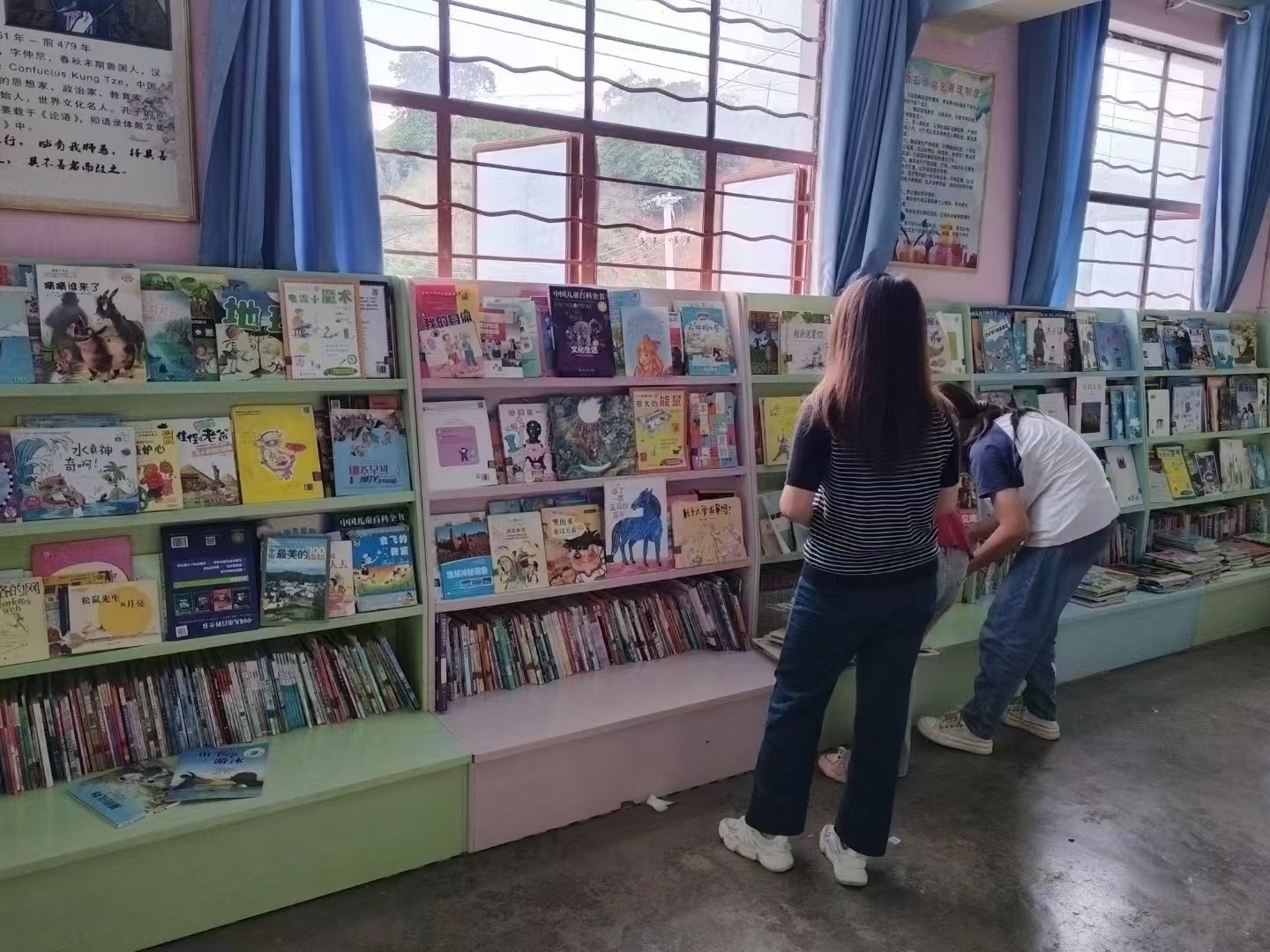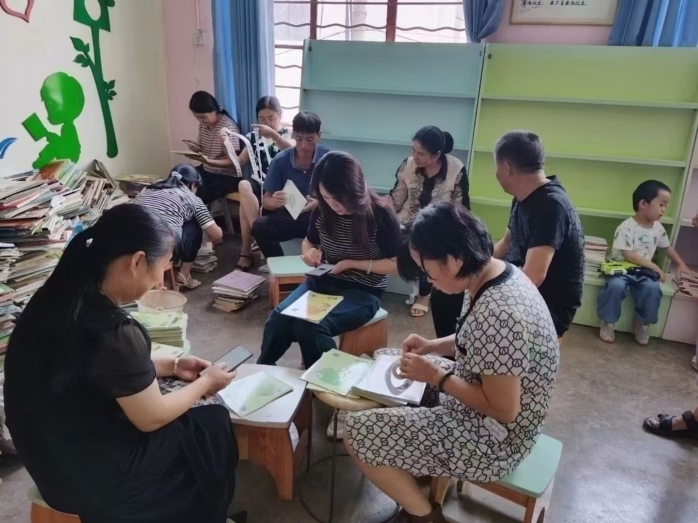 大概从一点干到三点,就让这个阅览室重焕光彩。藏书三千余册经过拣选、贴标、录入,收入2499册图书。老师们皆笑颜完工!