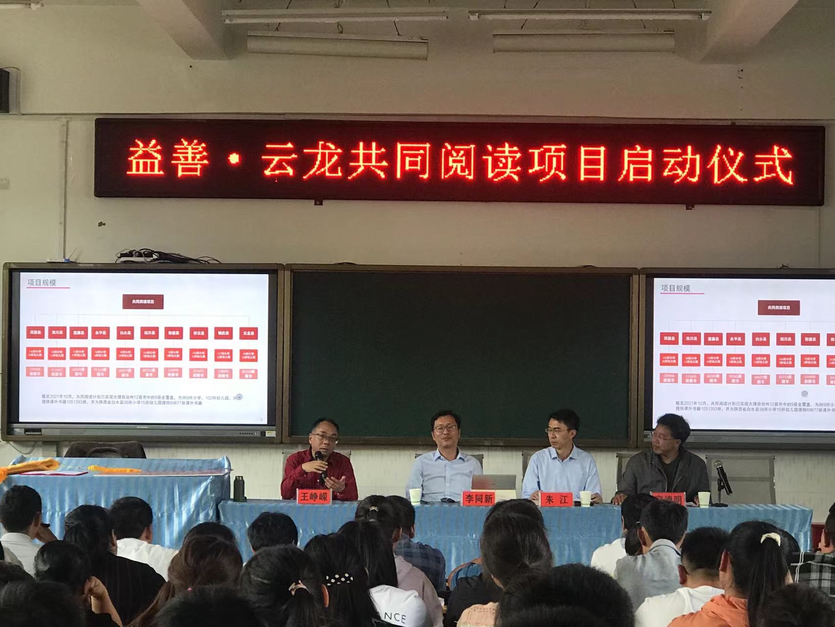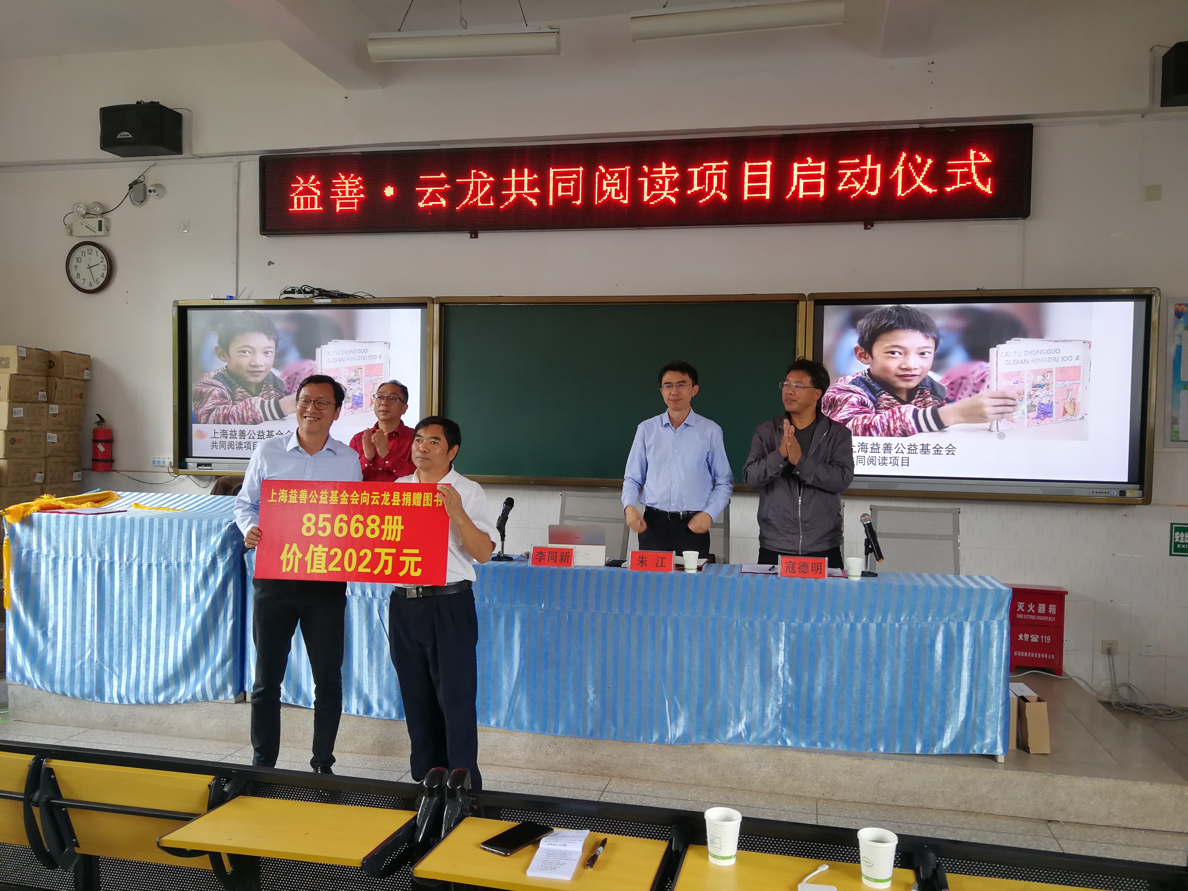 启动仪式由教育体育局寇德明局长主持,寇局长首先表达了对益善基金的感谢与欢迎。云龙县朱江副县长对益善给予云龙教育的支持表达了高度的敬意与感谢。李同新理事长介绍了基金会的基本情况以及益善和云龙的结缘,代表基金会感谢云龙给予机会一起推动乡村阅读。大理州社科联主席王峥嵘介绍自己作为益善发起班集体成员见证了益善一路来的发展历程。李同新理事长代表益善基金向云龙学校捐赠图书,教育局回赠捐赠证书和锦旗。下半场由李同新理事长和项目总监徐大明给受赠学校校长老师进行益善图书的管理使用培训,分享益善共同阅读理念以及优秀项目学校成功经验。寇局长最后总结要求全县各学校高度认同阅读的重要性,期待大家一起将共同阅读项目落地、落实!