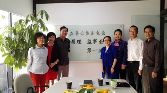 2014年10月18日,上海益善公益基金会第一届理、监事会第一次会议在上海召开。来自福建的理事长李同新、理事刘立耘,和来自北京的监事刘斌、马力,与上海的秘书长曹斌、理事刘萍、吴缨、吴晓红等同学及财务李琼,相聚上海淮海中路启华大厦乐丰财经公司会议室,会议制定了2014到2015年度益善工作计划,对公益产品、资金募集、宣传推广等事项做出了部署。
